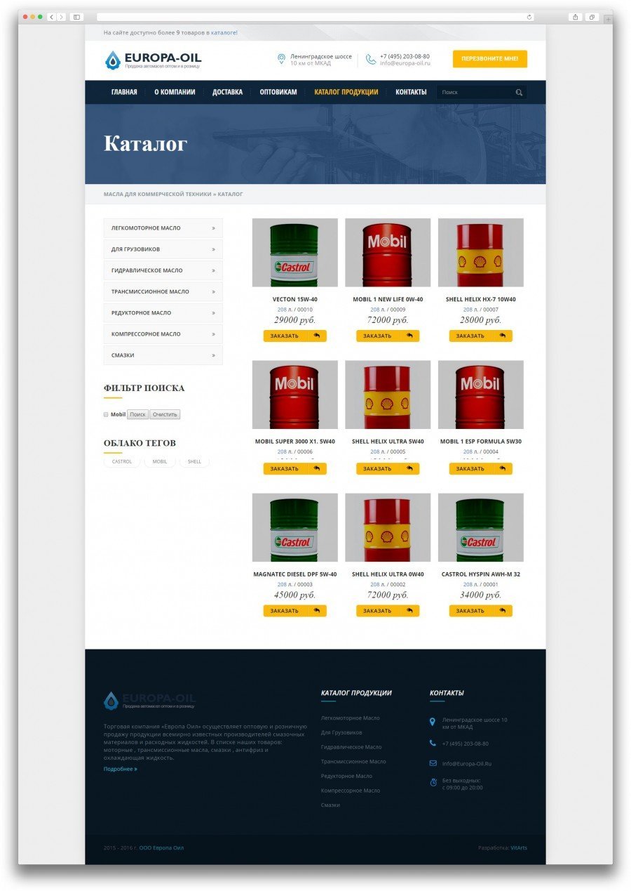 Задача: Разработать сайт для компании которая занимается продажей автомасел.