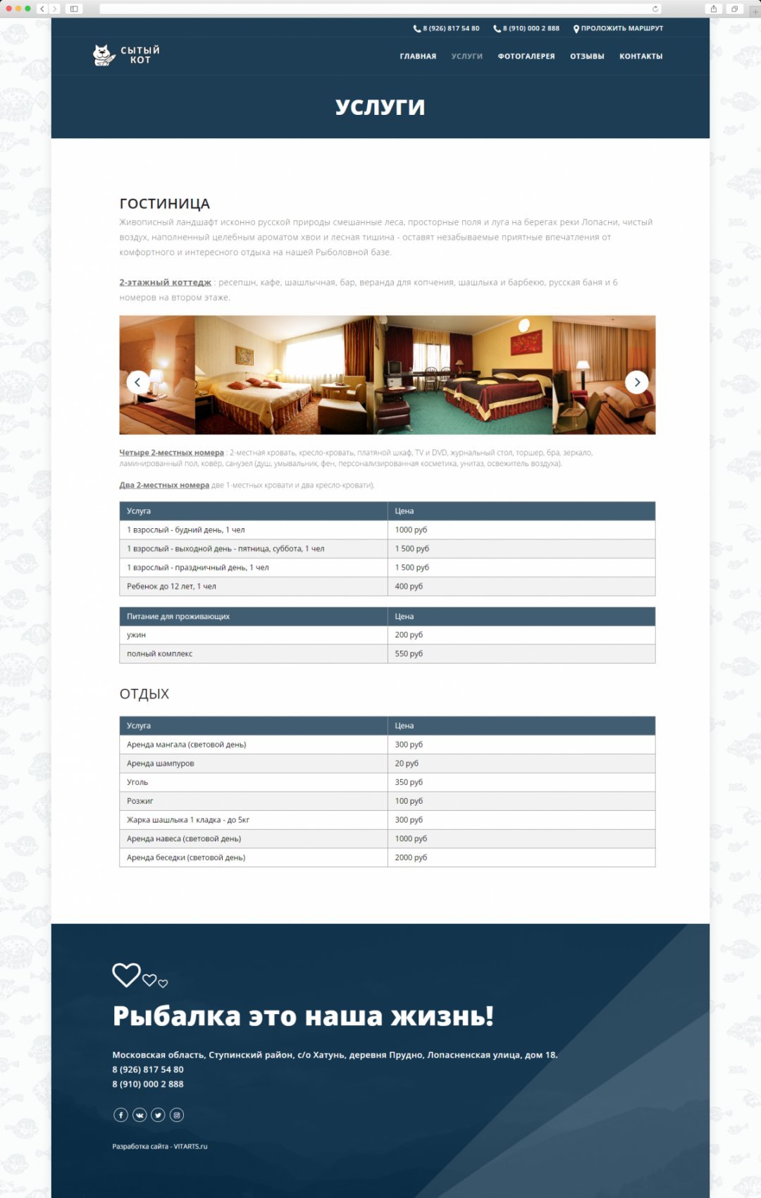 - Дизайн- Верстка- Программирование под CMS- Адаптивность (версия под все разрешения экрана и гаджеты)- Система бронирования - Обратная связь- Автоматизации- Галерея