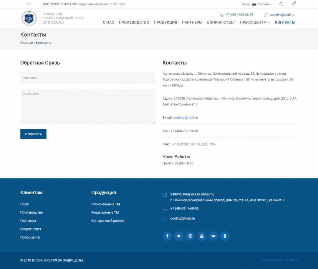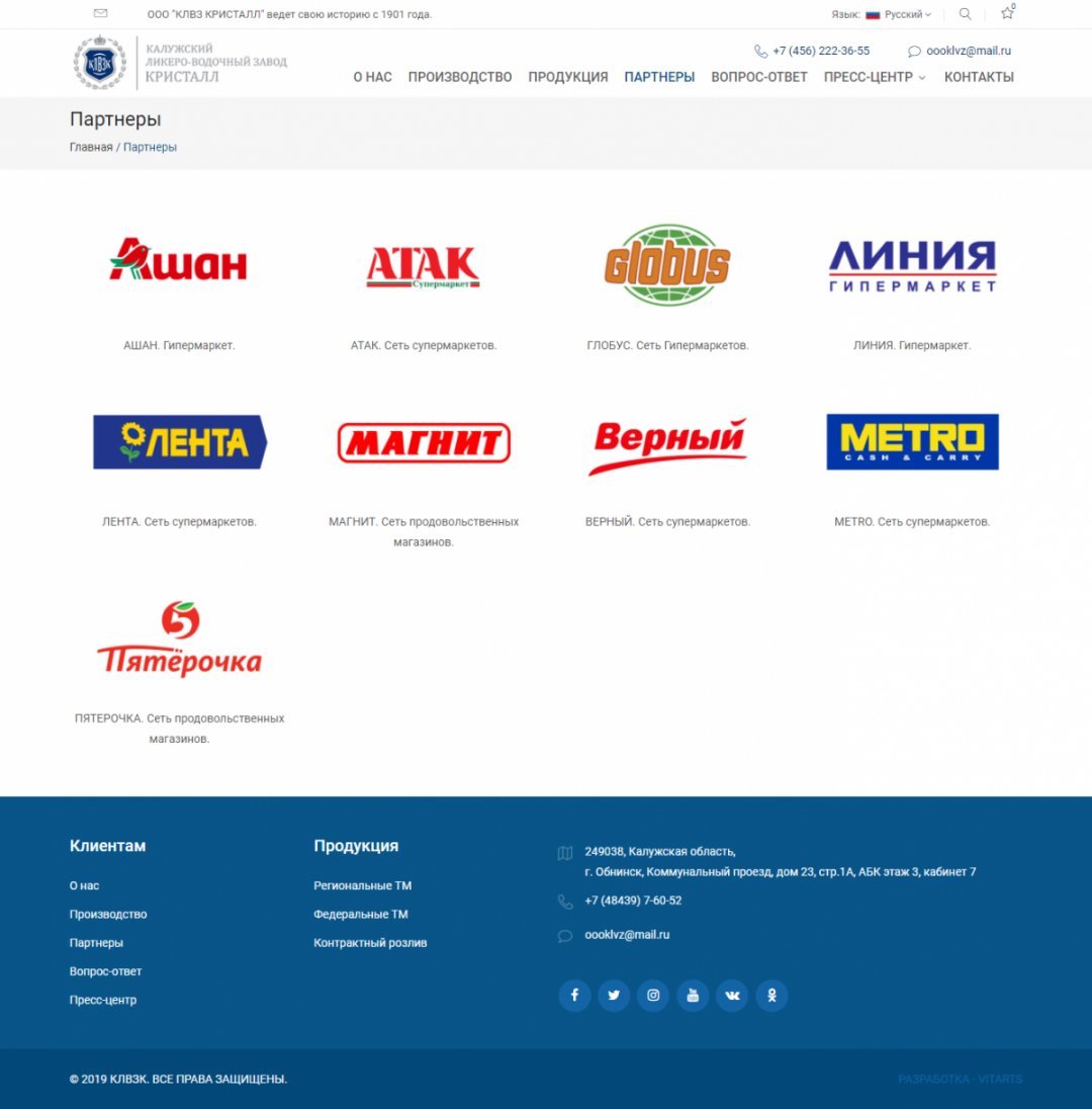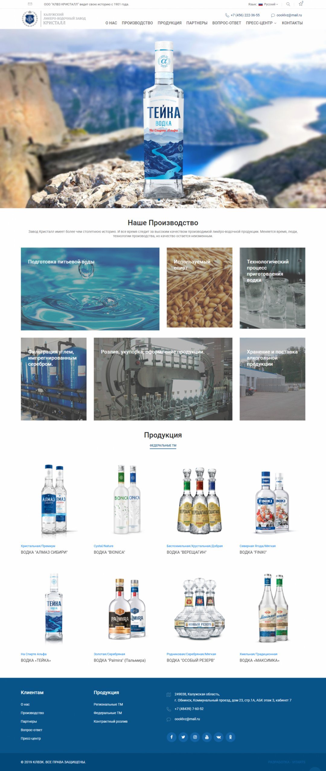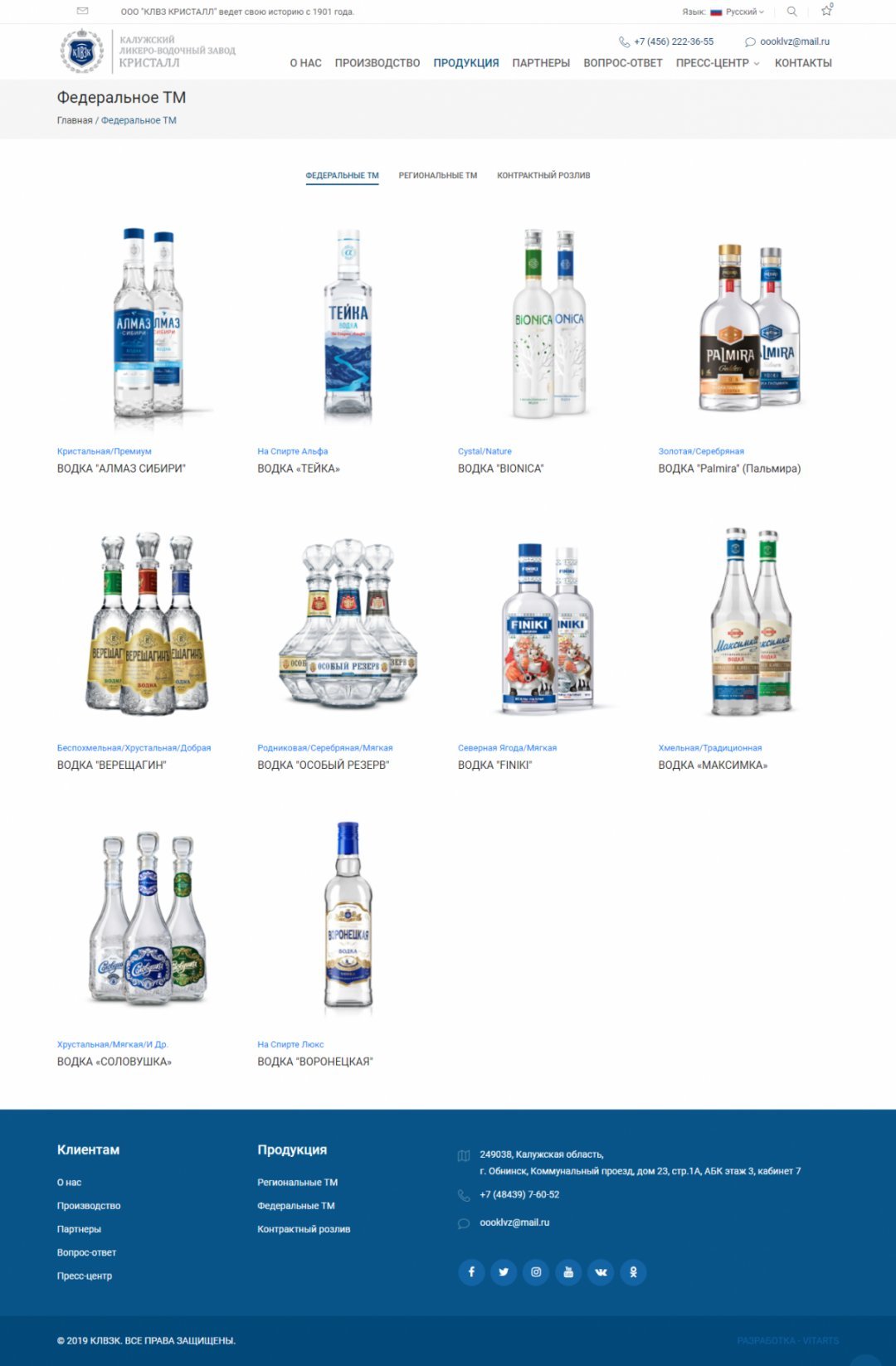 Сайт каталог для ООО "КЛВЗ КРИСТАЛЛ", русская и английская версия.