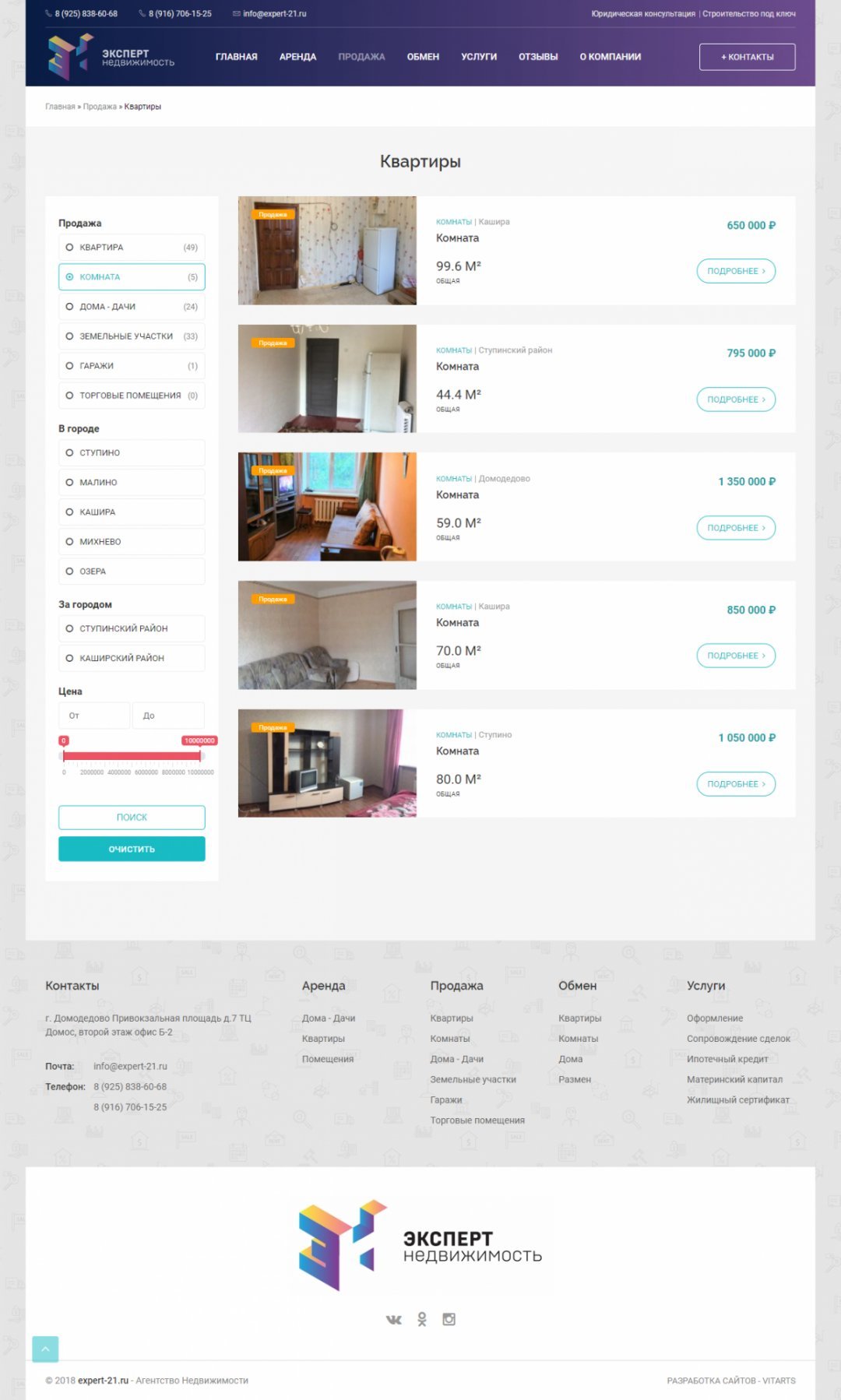 Сайт для недвижимости с автоматической выгрузкой с циан и авито, автоматическое обновление каталога.
